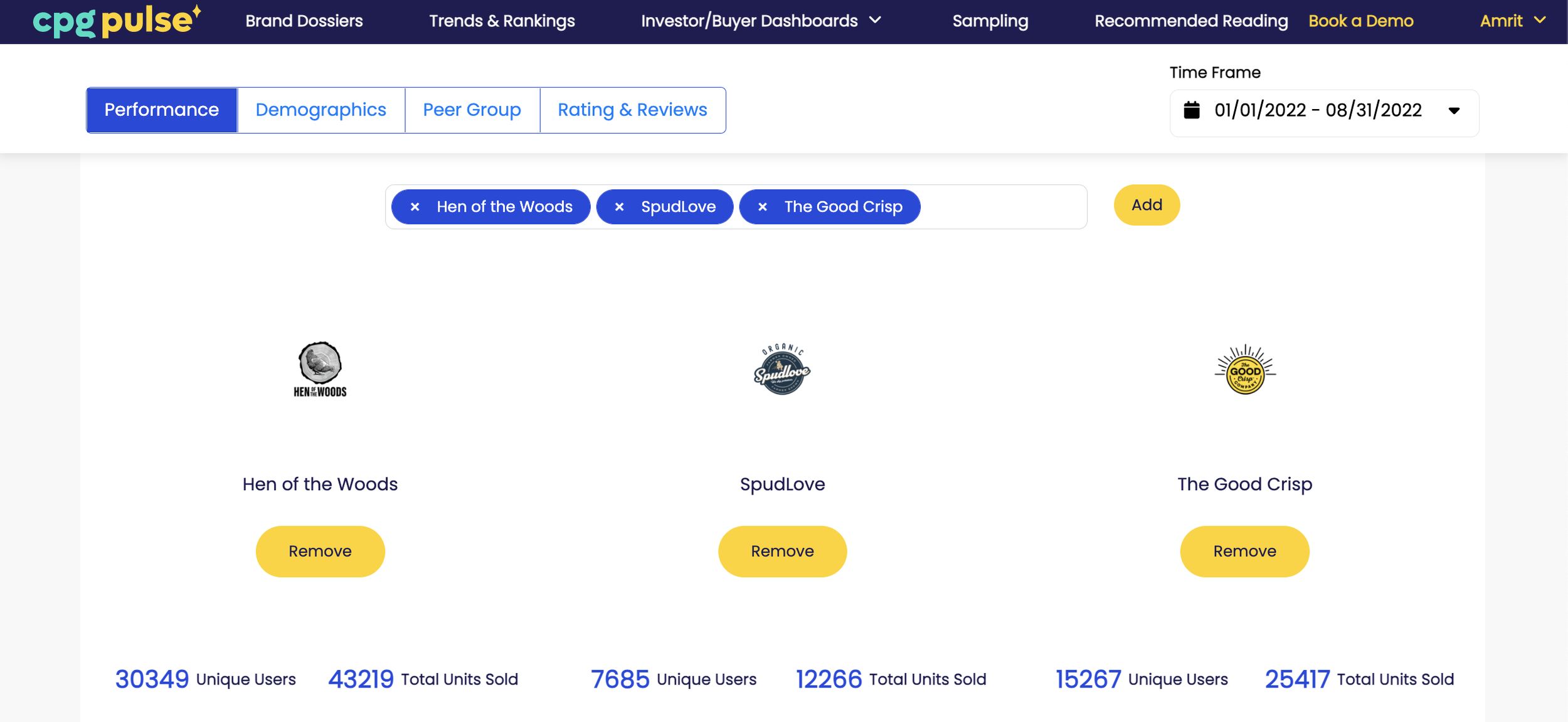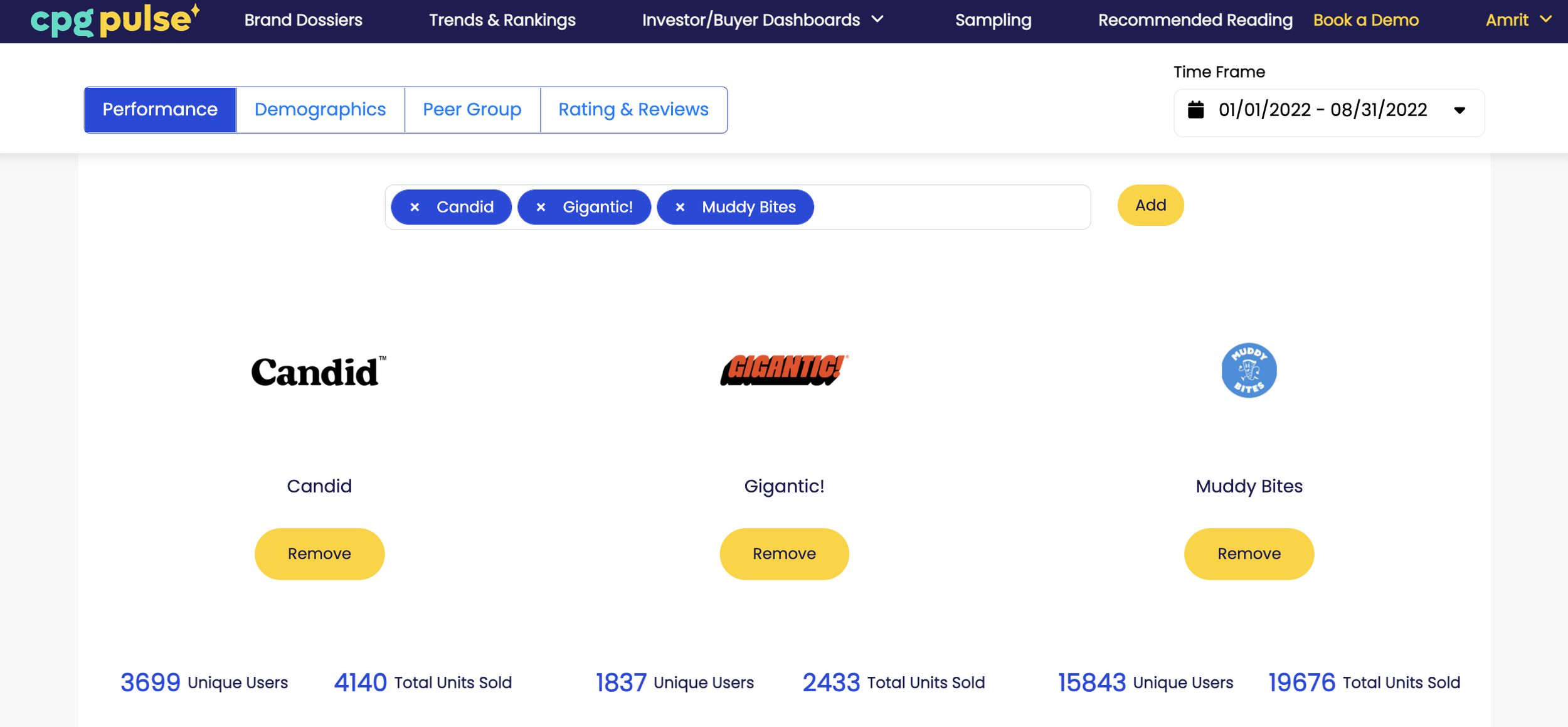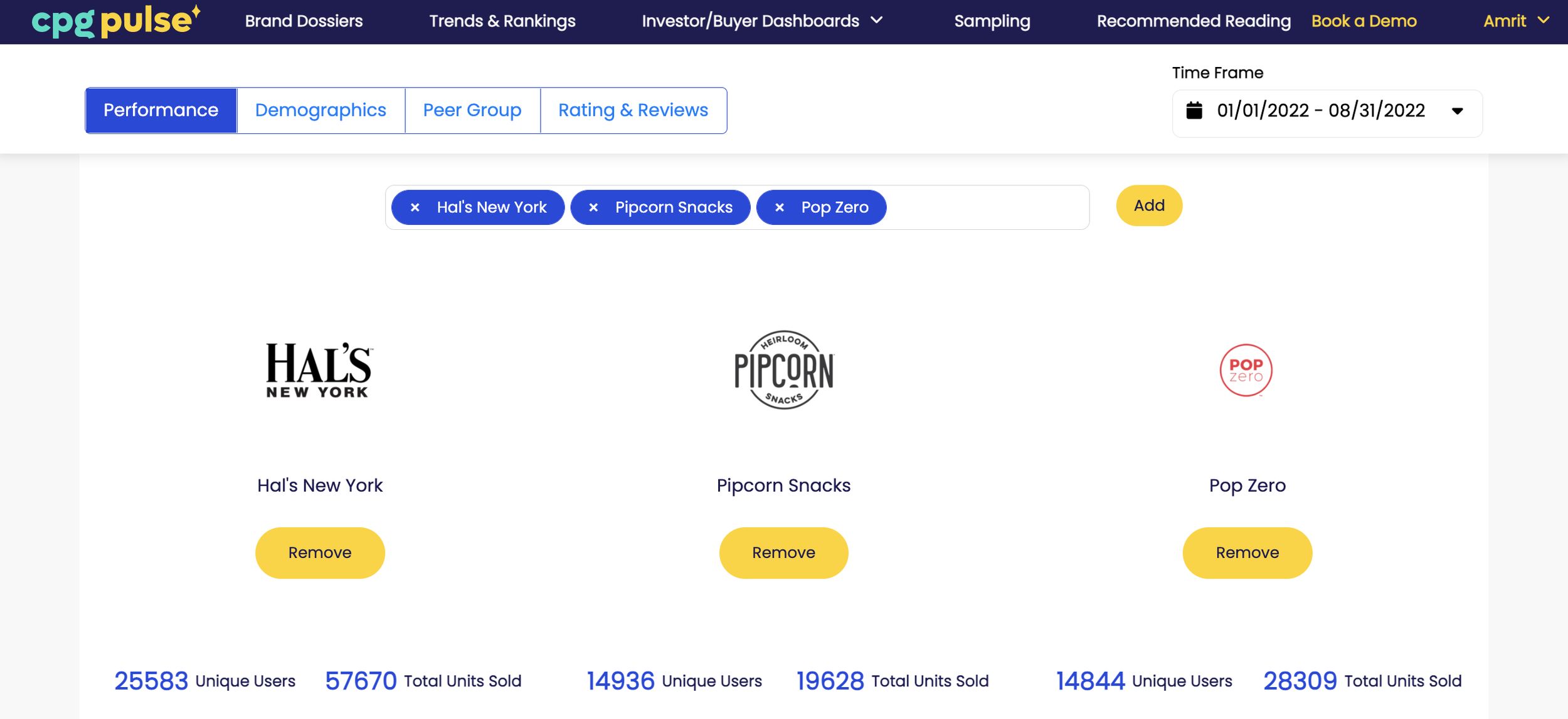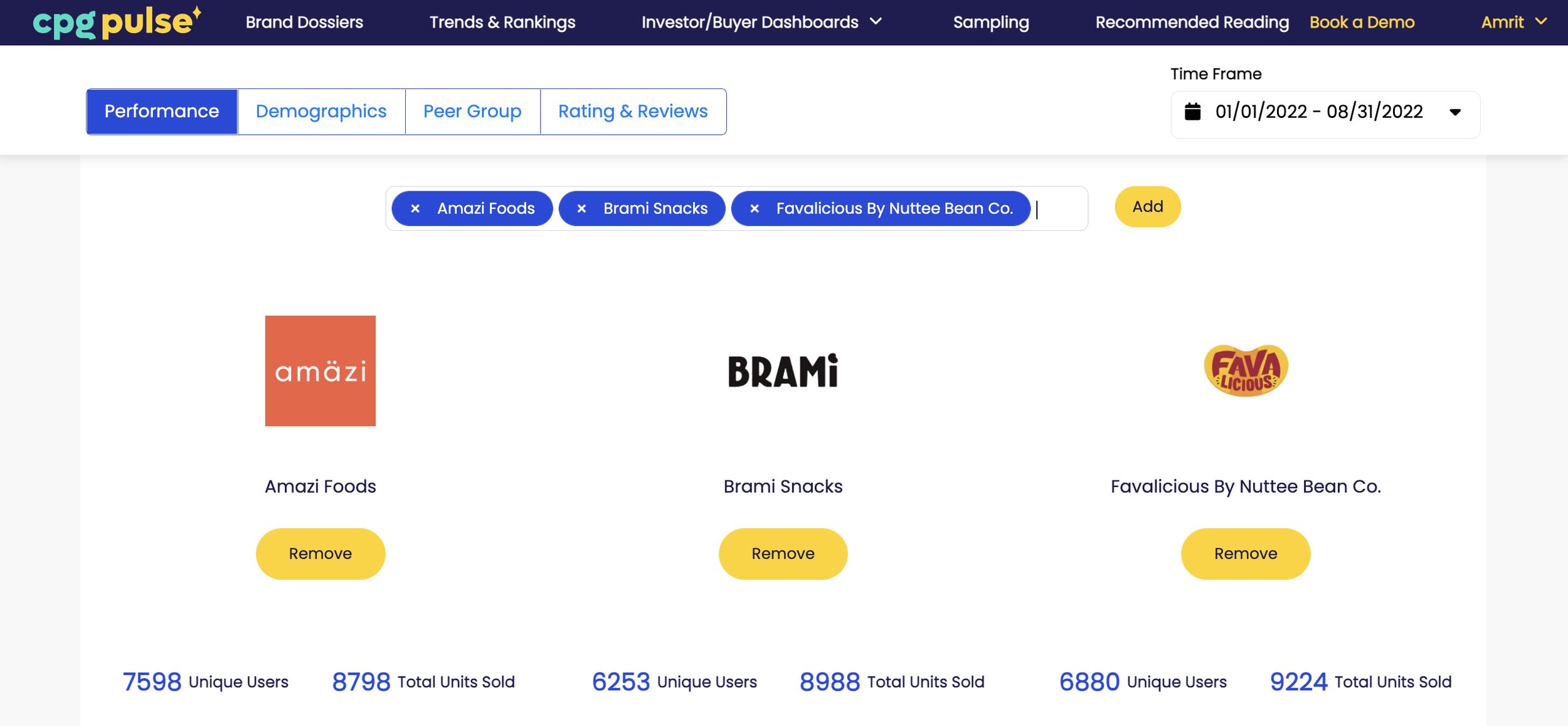 Using CPGPulse we compared sales of Amazi, Brami, and Favalicious on SnackMagic since 1/1/2022.