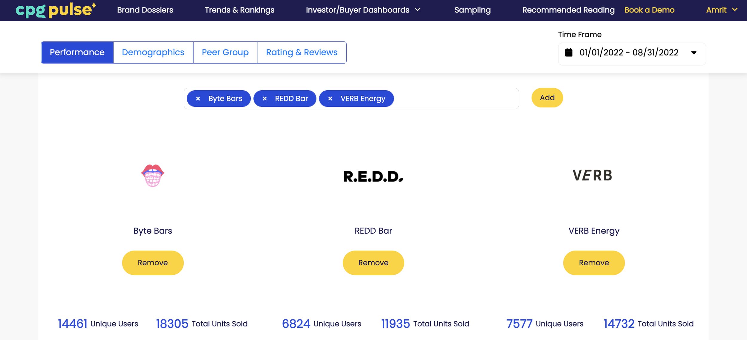 Using CPGPulse we compared sales of Byte Bars, R.E.D.D Bar, and VERB Energy on SnackMagic since 1/1/2022.