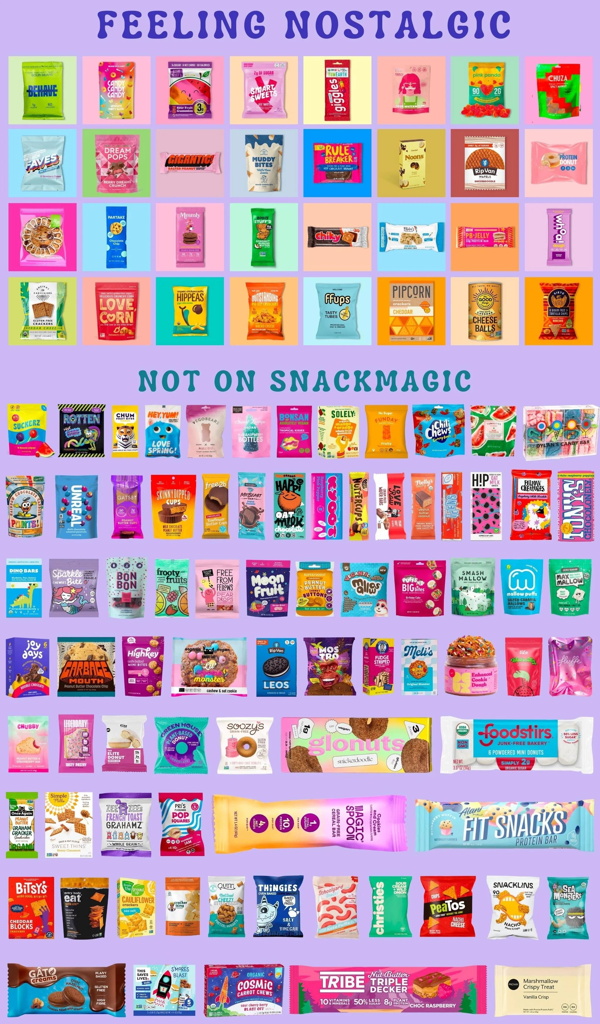 I hope you have as much fun reading this report as we had writing it. Grab your fave snack and an ice cold slushie, and don’t forget to feed your tamogotchi. Btw, brands with a colorful box around them are available on SnackMagic to purchase, the rest of the brands in each category relate to the trend.