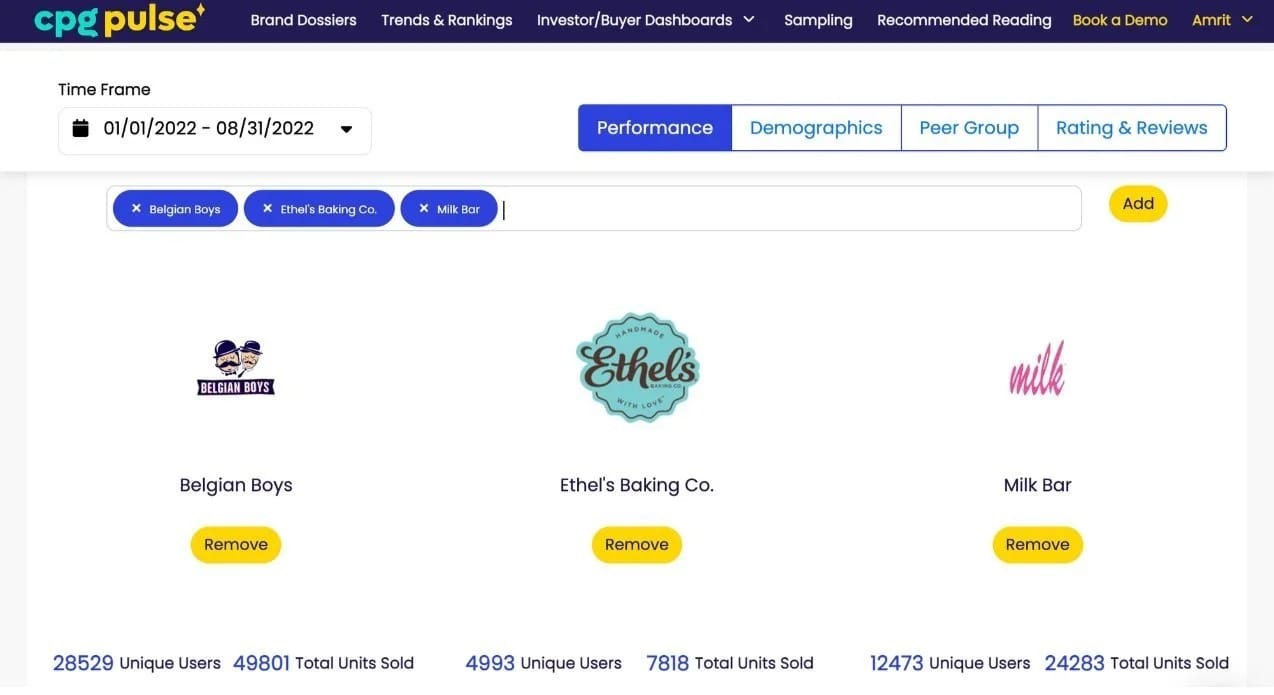 Using CPGPulse we compared sales of Belgian Boys, Ethel’s Baking Co., and Milk Bar on SnackMagic since 1/1/2022.